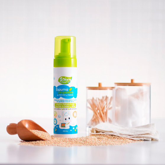 deal para el cuidado diario de la piel sensible de bebés y niños. Limpia, nutre y humecta con extracto de quinua y Aloe Vera.